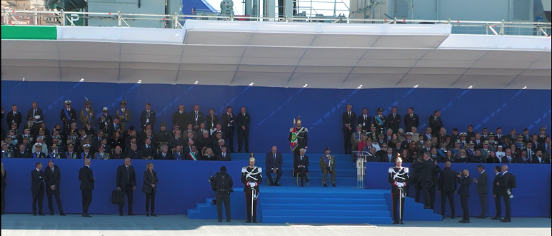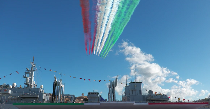 La cerimonia si è conclusa con il sorvolo delle Frecce tricolori sul cielo del porto di Ancona.